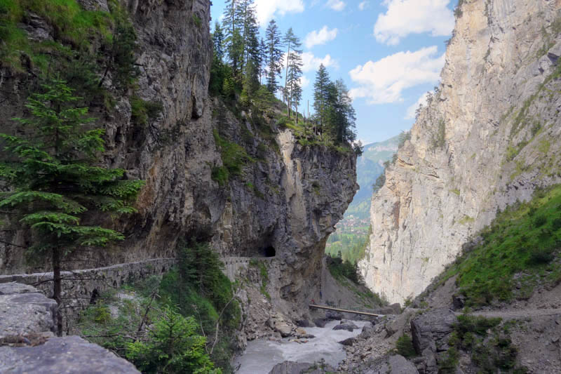 Variante: Vom Ende der Hauptstrasse folgt man ca. 200 m dem Gemmiweg und zweigt nach links ab, um durch die Chluse weiterzusteigen. Bitte beachten Sie, dass Sie auf dem ersten Abschnitt auf der Gasternzufahrtsstrasse laufen und mit Autos kreuzen müssen.