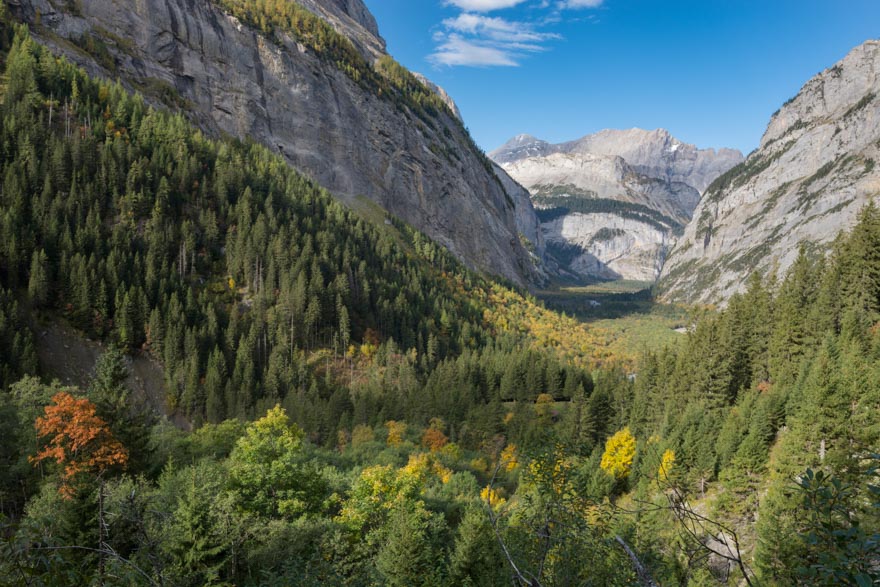 Von der Talstation der Luftseilbahn Kandersteg-Sunnbüel den Kanderfällen entlang führt die Route durch die Chluse ins Gasterntal zum Berghotel Waldhaus. Weiter gehts durch die Schwarzbachschlucht zur Bergstation der Sunnbüelbahn. Dauer: 3h.