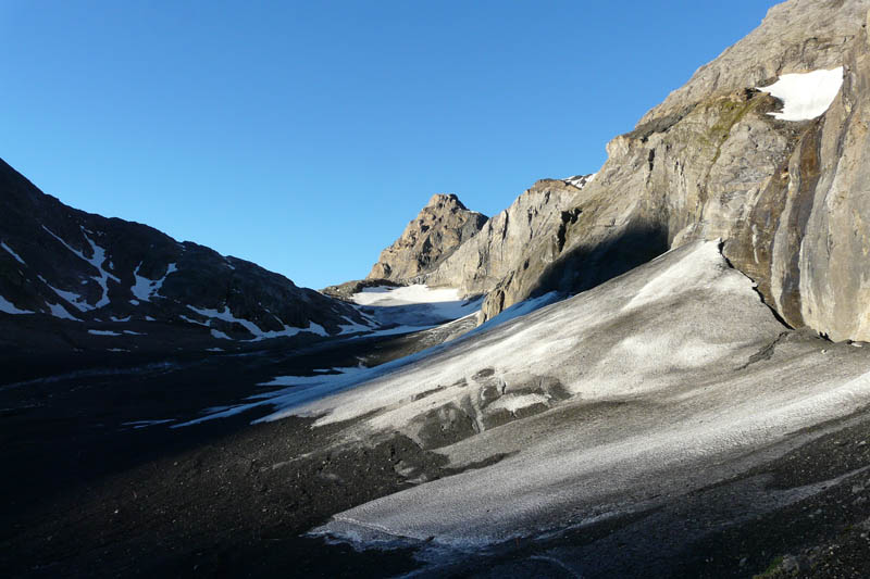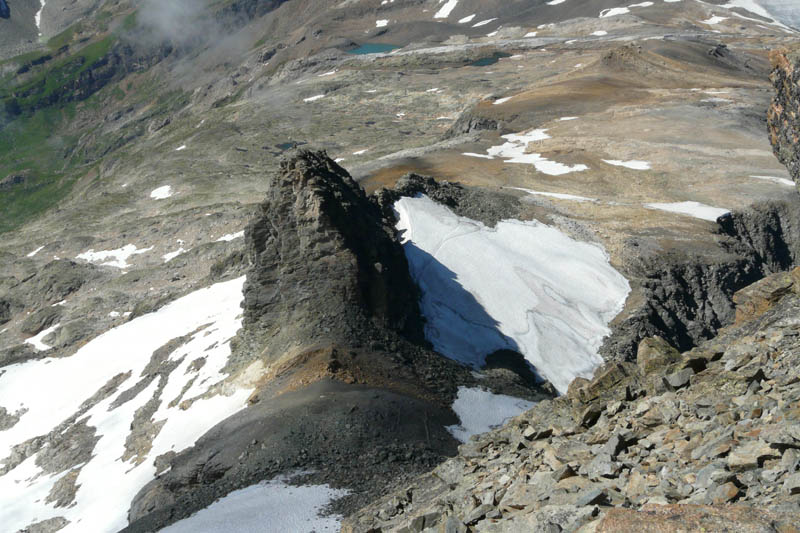 Vom unteren Tatelishorn kann auch das obere Tatelishorn (2962 m) bestiegen werden. Der Weg führt über eine steile Geröllflanke und wird nur geübten Bergwanderer empfohlen.